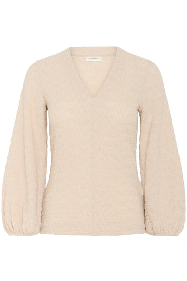 OBS! Fjernlager. Levering kan blive forlænget med 2-3 dage, hvis varen ikke findes i vores butik lige nu.Lækker blød strik fra InWear med ¾ lange puffede ærmer og v-udskæring i halsen.