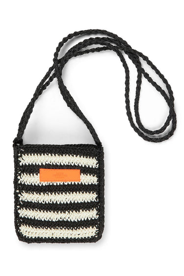 OBS! Fjernlager. Levering kan blive forlænget med 2-3 dage, hvis varen ikke findes i vores butik lige nu.Smart crossbody taske fra Mads Nørgaard, hæklet i sorte og hvide striber.