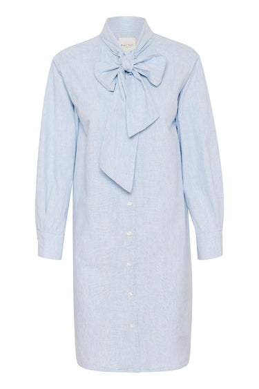 OBS! Fjernlager. Levering kan blive forlænget med 2-3 dage, hvis varen ikke findes i vores butik lige nu.Feminin kjole fra Part Two med lange ærmer, høj hals med et bredt bindebånd og knaplukning langs fronten. Kjolen har også et afslappet snit og en fin kvalitet.
