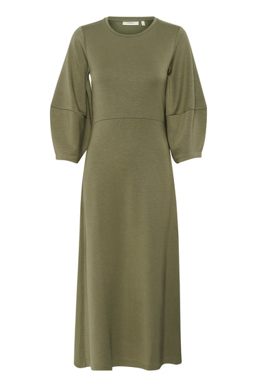 OBS! Fjernlager. Levering kan blive forlænget med 2-3 dage, hvis varen ikke findes i vores butik lige nu.Blød og lækker kjole fra InWear med ¾ lange puffede ærmer, rund hals og et feminint snit.