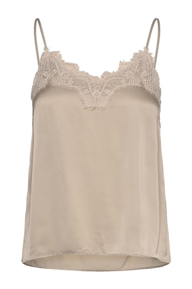 OBS! Fjernlager. Levering kan blive forlænget med 2-3 dage, hvis varen ikke findes i vores butik lige nu.Feminin blonde top fra Rosemunde med smalle justerbare skulderstropper.