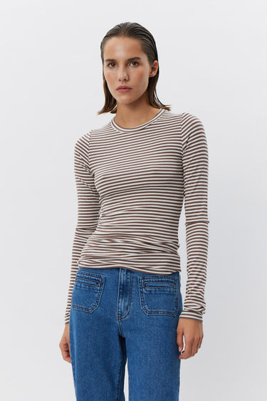 PETRICIASW STRIPE TSHIRT LONG 7113 Brown Striped SNOS433