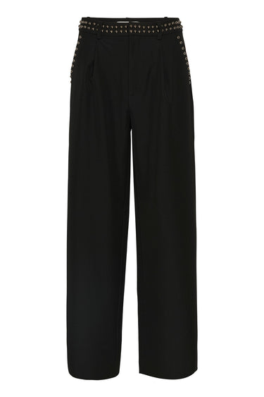 Cool bukser fra Gestuz med vidde i benene, en lækker kvalitet og rå nitter i taljen og omkring forlommerne.