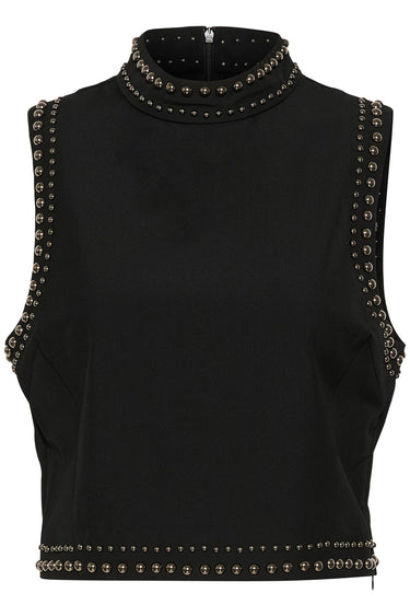 Cool top fra Gestuz med høj hals, en cropped længde og lynlåslukning i siden.Toppen har også runde nitter i kanterne og en flot kvalitet.
