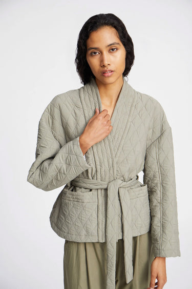 OBS! Fjernlager. Levering kan blive forlænget med 2-3 dage, hvis varen ikke findes i vores butik lige nu.Elegant quiltet jakke fra Munthe med et smukt taljebælte og forlommer. Jakken har en elegant dobbeltknappet lukning og en afslappet silhuet.