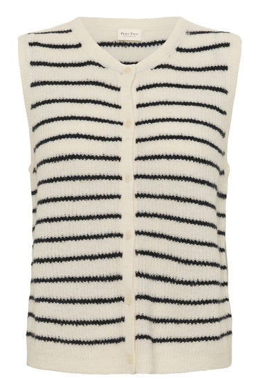 OBS! Fjernlager. Levering kan blive forlænget med 2-3 dage, hvis varen ikke findes i vores butik lige nu.Smart strikket vest fra Part Two med v-udskæring i halsen og små knapper langs fronten.