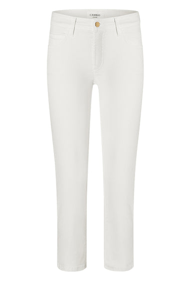 OBS! Fjernlager. Levering kan blive forlænget med 2-3 dage, hvis varen ikke findes i vores butik lige nu.Flotte enkle jeans fra Cambio med en lækker blød kvalitet, en let cropped længde og en flot pasform.