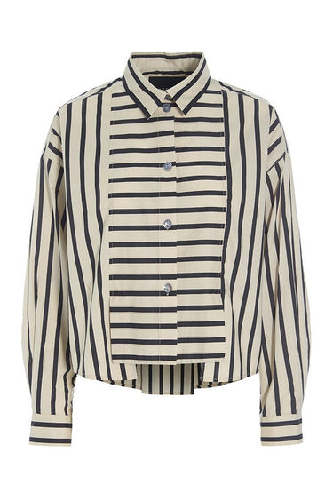 OBS! Fjernlager. Levering kan blive forlænget med 2-3 dage, hvis varen ikke findes i vores butik lige nu.Kort, stribet skjorte fra Bitte Kai Rand i en lækker, økologisk bomuldskvalitet. Designet er helt enkelt – dog tilsat den detalje, at der er læg på forstykket. En flot og tidløs skjorte, der kan kombineres med stort set alle underdele.