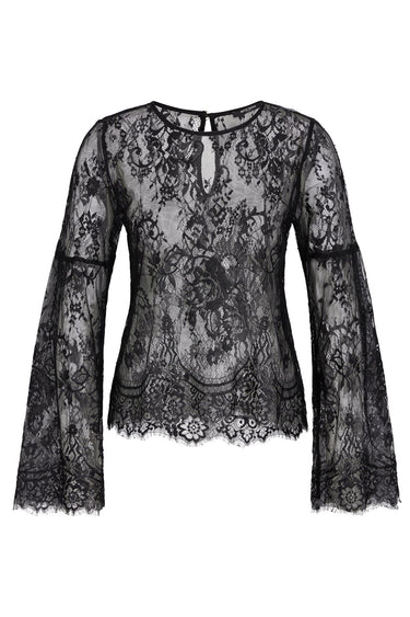OBS! Fjernlager. Levering kan blive forlænget med 2-3 dage, hvis varen ikke findes i vores butik lige nu.Smuk bluse med et elegant, figursyet snit og delikate blonder. Designet med en rund hals og knaplukning bagpå, der giver blusen et feminint udtryk.
