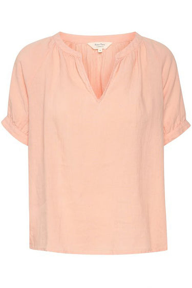 OBS! Fjernlager. Levering kan blive forlænget med 1-2 dage, hvis varen ikke findes i vores butik lige nu.Fin bluse fra Part Two med korte pufærmer og rund hals med en lille v-udskæring. Blusen har en dejlig hør kvalitet og en afslappet pasform.