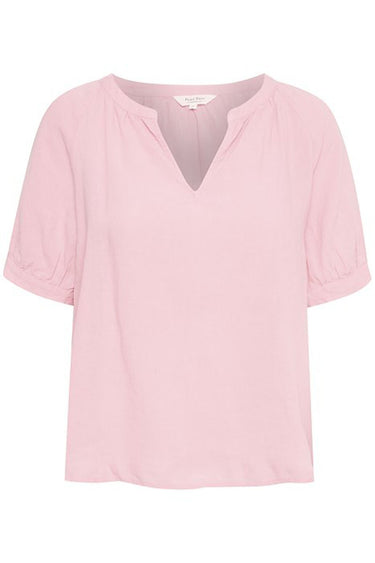 OBS! Fjernlager. Levering kan blive forlænget med 1-2 dage, hvis varen ikke findes i vores butik lige nu.Fin bluse fra Part Two med korte pufærmer og rund hals med en lille v-udskæring. Blusen har en dejlig hør kvalitet og en afslappet pasform.