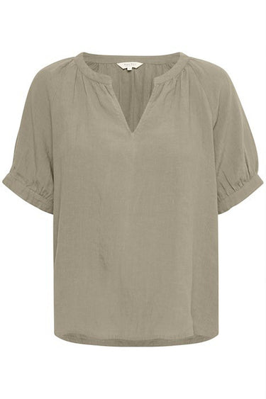 OBS! Fjernlager. Levering kan blive forlænget med 1-2 dage, hvis varen ikke findes i vores butik lige nu.Fin bluse fra Part Two med korte pufærmer og rund hals med en lille v-udskæring. Blusen har en dejlig hør kvalitet og en afslappet pasform.