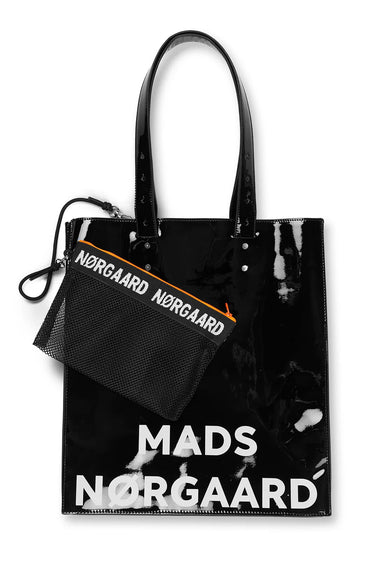 OBS! Fjernlager. Levering kan blive forlænget med 2-3 dage, hvis varen ikke findes i vores butik lige nu.Cool lakshopper fra Mads Nørgaard med lange hanke og tilhørende netpung med logokant.