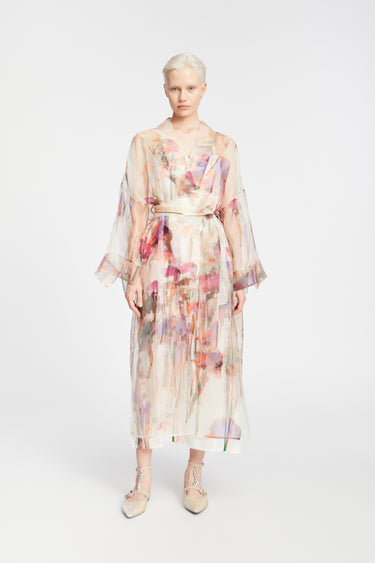 OBS! Fjernlager. Levering kan blive forlænget med 2-3 dage, hvis varen ikke findes i vores butik lige nu.Smuk kjole fra Munthe i en flot silkekvalitet.Kjolen består af en elegant underkjole med smalle skulderstropper, det smukkeste transparente yderlag med et malerisk print og et fint bindebælte til taljen.