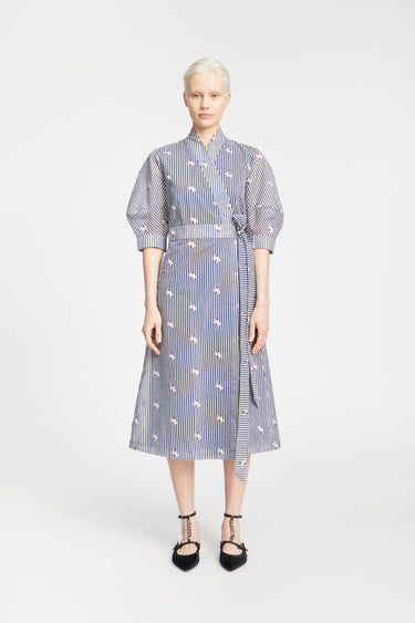 OBS! Fjernlager. Levering kan blive forlænget med 2-3 dage, hvis varen ikke findes i vores butik lige nu.Elegant slå-om kjole fra Munthe med ½ lange pufærmer, et bredt bindebælte i siden og et super flot print. Kjolen har også lommer i siderne og et feminint udtryk.