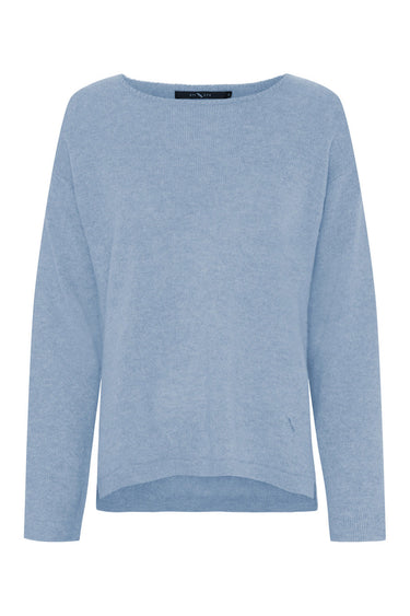 Pure Cashmere Pullover w. Boat Light Blue Melange 500083