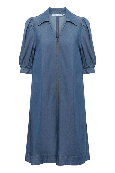 OBS! Fjernlager. Levering kan blive forlænget med 2-3 dage, hvis varen ikke findes i vores butik lige nu.Feminin kjole fra InWear med ¾ lange ærmer, v-udskæring med en blød krave i halsen og en dejlig blød kvalitet.