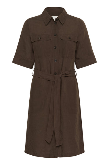 OBS! Fjernlager. Levering kan blive forlænget med 2-3 dage, hvis varen ikke findes i vores butik lige nu.Flot skjortekjole fra Part Two med ½ lange ærmer, krave i halsen og fine lommer på brystet.Kjolen har også et bredt bindebælte i taljen og knaplukning langs fronten.