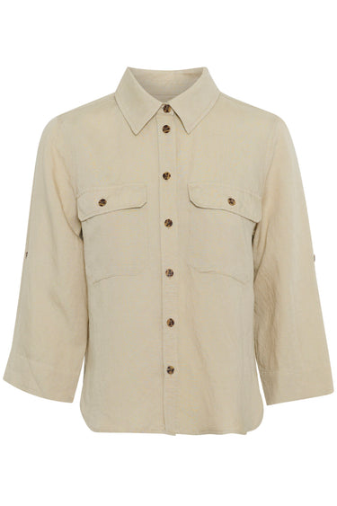 OBS! Fjernlager. Levering kan blive forlænget med 2-3 dage, hvis varen ikke findes i vores butik lige nu.Smart skjortebluse fra Part Two med ¾ lange ærmer, krave i halse og fine lommer på brystet. Blusen lukkes langs fronten med små knapper.