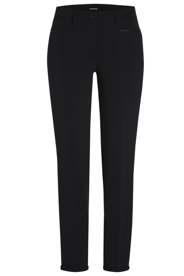 OBS! Fjernlager. Levering kan blive forlænget med 5-7 dage, hvis varen ikke findes i vores butik lige nu.Pæne bukser fra Cambio.Der er to lommer på front og pasformen er tæt. Brug dem sammen med en stor skjorte og en kort jakke for et eksklusivt hverdags look.*Model: RENIRA 0285 11 6111 SORT*Kvalitet: 50% polyamid, 43% bomuld, 7% elasthan*Vask: håndvaskes