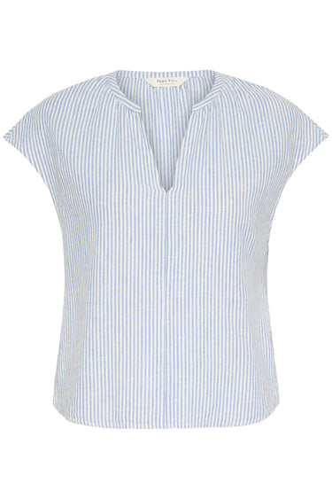 OBS! Fjernlager. Levering kan blive forlænget med 2-3 dage, hvis varen ikke findes i vores butik lige nu.Fin enkel bluse fra Part Two med små ærmer, rund hals med v-udskæring og et klassisk stribet print.