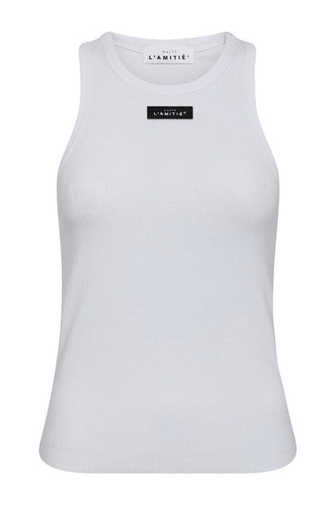 OBS! Fjernlager. Levering kan blive forlænget med 2-3 dage, hvis varen ikke findes i vores butik lige nu.Smart enkel rib top fra Haute L'Amitié med rund hals og et lille logo label på brystet.