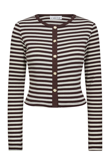 Rib Striped Crop Cardigan Mocca Stripe