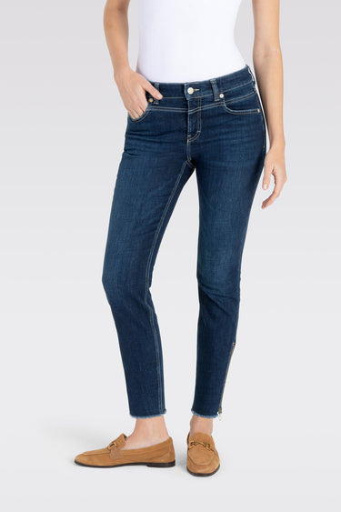 Lækre jeans fra Mac med et straight leg snit, en tætsiddende pasform og en cropped længde.Bukserne har også klassiske lommer, lynlås detaljer i bunden af benene og cool rå kanter.