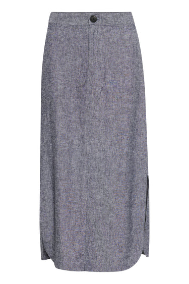 OBS! Fjernlager. Levering kan blive forlænget med 2-3 dage, hvis varen ikke findes i vores butik lige nu.Fin enkel nederdel fra InWear med slids i siden, mid-rise talje og en dejlig blød kvalitet.