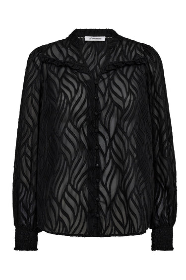 OBS! Fjernlager. Levering kan blive forlænget med 2-3 dage, hvis varen ikke findes i vores butik lige nu.Smuk bluse fra Co'couture med lange ærmer, rund hals med v-udskæring og brede smock manchetter samt de flotteste broderet detaljer.