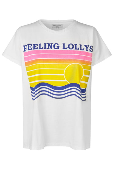 - OBS! Fjernlager. Levering kan blive forlænget med 2-3 dage, hvis varen ikke findes i vores butik lige nu.Cool tee fra Lollys Laundry med korte ærmer, rund hals og et smart grafisk print på fronten.
