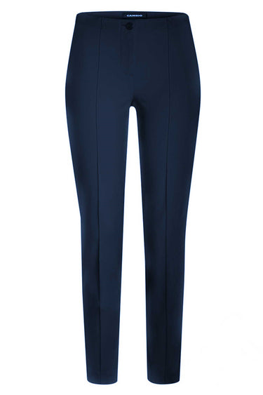 OBS! Fjernlager. Levering kan blive forlænget med 5-7 dage, hvis varen ikke findes i vores butik lige nu.Rigtig smarte bukser fra Cambio. Modellen her har smalle ben og høj talje samt elastik i taljen. Flotte og dekorative stikninger ned langs lår og ben foran og bagpå giver en slankende effekt og gør bukserne perfekte med både korte og lange overdele til.* Model: ROS 0202 00 6111 Navy* Kvalitet: 92% polyamid, 8% elastan* Vask: 30 grader
