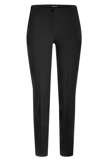 OBS! Fjernlager. Levering kan blive forlænget med 5-7 dage, hvis varen ikke findes i vores butik lige nu.Rigtig smarte bukser fra Cambio. Modellen her har smalle ben og høj talje samt elastik i taljen. Flotte og dekorative stikninger ned langs lår og ben foran og bagpå giver en slankende effekt og gør bukserne perfekte med både korte og lange overdele til.* Model: ROS 0202 00 6111 SORT* Kvalitet: 92% polyamid, 8% elastan* Vask: 30 grader