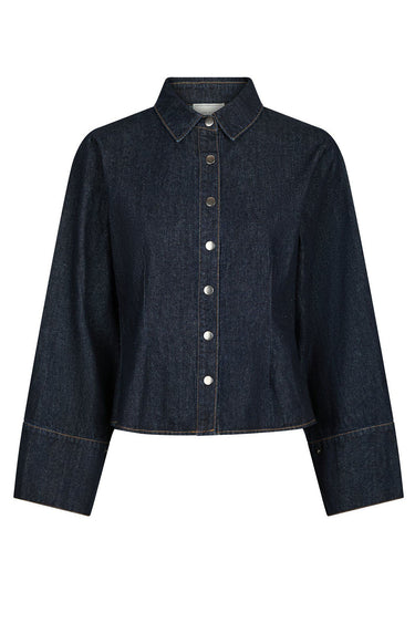 - Smart denim skjorte fra Neo Noir med lange ærmer, krave i halsen og knaplukning langs fronten.