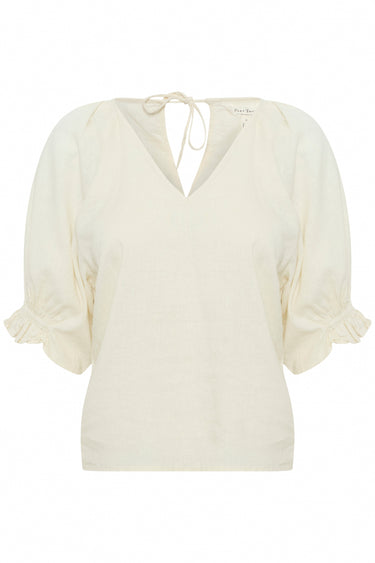 OBS! Fjernlager. Levering kan blive forlænget med 2-3 dage, hvis varen ikke findes i vores butik lige nu.Sød top fra Part Two med ½ lange pufærmer, v-udskæring med bindebånd i halsen og en dejlig let kvalitet.