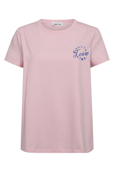 OBS! Fjernlager. Levering kan blive forlænget med 2-3 dage, hvis varen ikke findes i vores butik lige nu.Smart tee fra Haute L'Ámitié med korte ærmer, rund hals og et fint lille print på brystet.