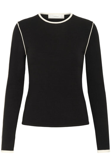 OBS! Fjernlager. Levering kan blive forlænget med 2-3 dage, hvis varen ikke findes i vores butik lige nu.Smart enkel strik fra InWear med lange ærmer, rund hals og smalle kontrastfarvet kanter.
