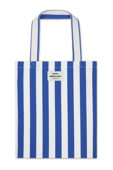 OBS! Fjernlager. Levering kan blive forlænget med 2-3 dage, hvis varen ikke findes i vores butik lige nu.Elegant shoppenet fra Mads Nørgaard med kraftige bærehanke, et fint logo på fronten og et klassisk stribet print.