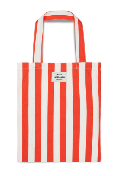 OBS! Fjernlager. Levering kan blive forlænget med 2-3 dage, hvis varen ikke findes i vores butik lige nu.Elegant shoppenet fra Mads Nørgaard med kraftige bærehanke, et fint logo på fronten og et klassisk stribet print.