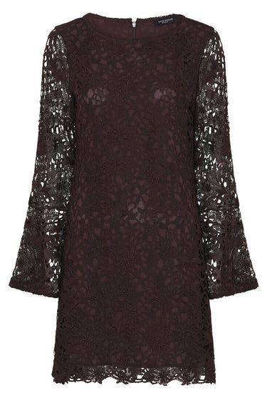 - OBS! Fjernlager. Levering kan blive forlænget med 1-2 dage, hvis varen ikke findes i vores butik lige nu.Utrolig smuk kjole fra Bruuns Bazaar med den flotteste all-over broderet kvalitet, lange ærmer og bådudskæring i halsen.Kjolen kommer også med en blød underkjole og lukkes i ryggen med lynlås.