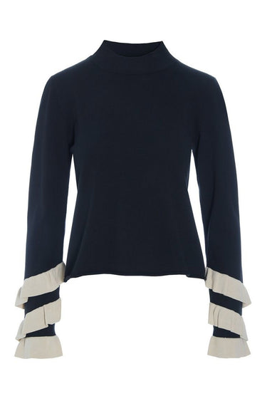 Saku bluse med flæser BLACK/IVORY TWIST 25910735522