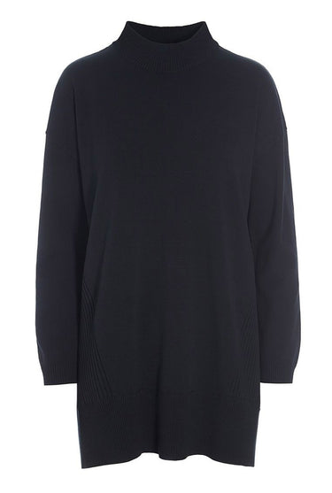 OBS! Fjernlager. Levering kan blive forlænget med 2-3 dage, hvis varen ikke findes i vores butik lige nu.Finstrikket, lang bluse i en blød, viskoseblandet kvalitet. Blusen har en ribeffekt på for- og bagstykke og forneden en bred ribkant med slids i siderne. Blusens længde gør det oplagt at kombinere den med et par tætsiddende bukser eller leggins.