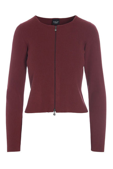 OBS! Fjernlager. Levering kan blive forlænget med 2-3 dage, hvis varen ikke findes i vores butik lige nu.Denne ribstrikkede bluse er moderat kropsnær. Med lynlåslukningen og den korte længde kan blusen fungere som et elegant alternativ til en cardigan. Perfekt sammen med enhver underdel og også flot med en løstsiddende blazer over.