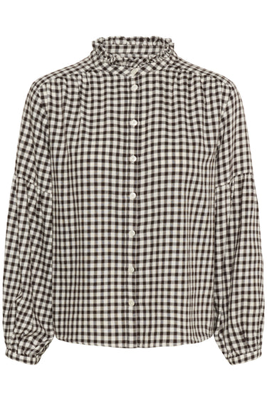 OBS! Fjernlager. Levering kan blive forlænget med 2-3 dage, hvis varen ikke findes i vores butik lige nu.Sød skjortebluse fra Part Two med lange ærmer, en lille flæsekant i halsen og knaplukning langs fronten.