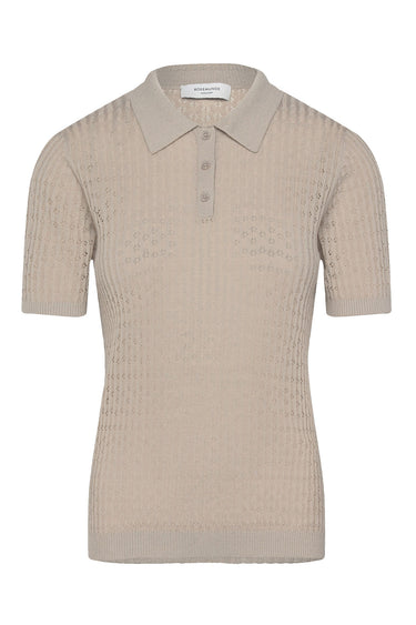 - Feminin Rosemunde strik med korte ærmer og en lille krave i halsen.