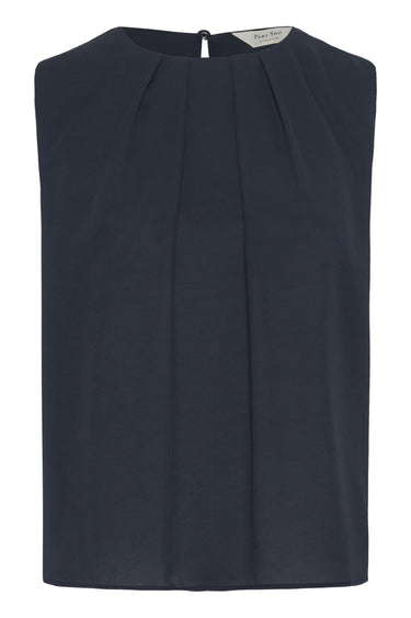 OBS! Fjernlager. Levering kan blive forlænget med 2-3 dage, hvis varen ikke findes i vores butik lige nu.Feminin top fra Part Two med rund hals og fine læg over brystet.