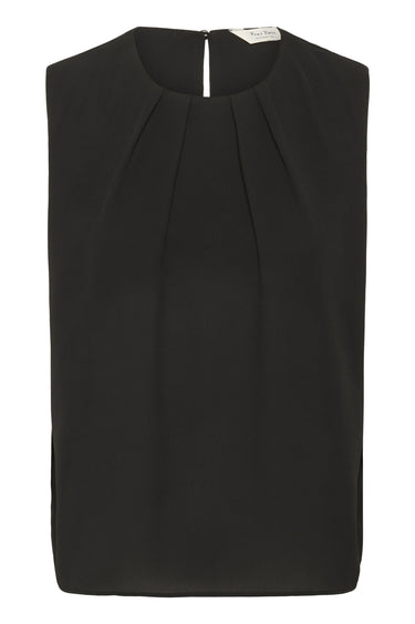 OBS! Fjernlager. Levering kan blive forlænget med 2-3 dage, hvis varen ikke findes i vores butik lige nu.Feminin top fra Part Two med rund hals og fine læg over brystet.