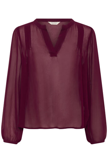 OBS! Fjernlager. Levering kan blive forlænget med 2-3 dage, hvis varen ikke findes i vores butik lige nu.Elegant bluse fra Part Two med lange ærmer, rund hals med v-udskæring og en let transparent kvalitet.