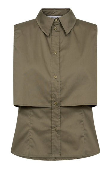 OBS! Fjernlager. Levering kan blive forlænget med 2-3 dage, hvis varen ikke findes i vores butik lige nu.Smart workwear inspireret top fra Co'couture med krave i halsen og knaplukning lang fronten.