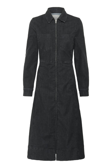 OBS! Fjernlager. Levering kan blive forlænget med 2-3 dage, hvis varen ikke findes i vores butik lige nu.Smart denim kjole fra Part Two med lange ærmer, en lille krave i halsen og fine lommer på brystet.Kjolen har også en feminin silhuet og lynlåslukning langs fronten.